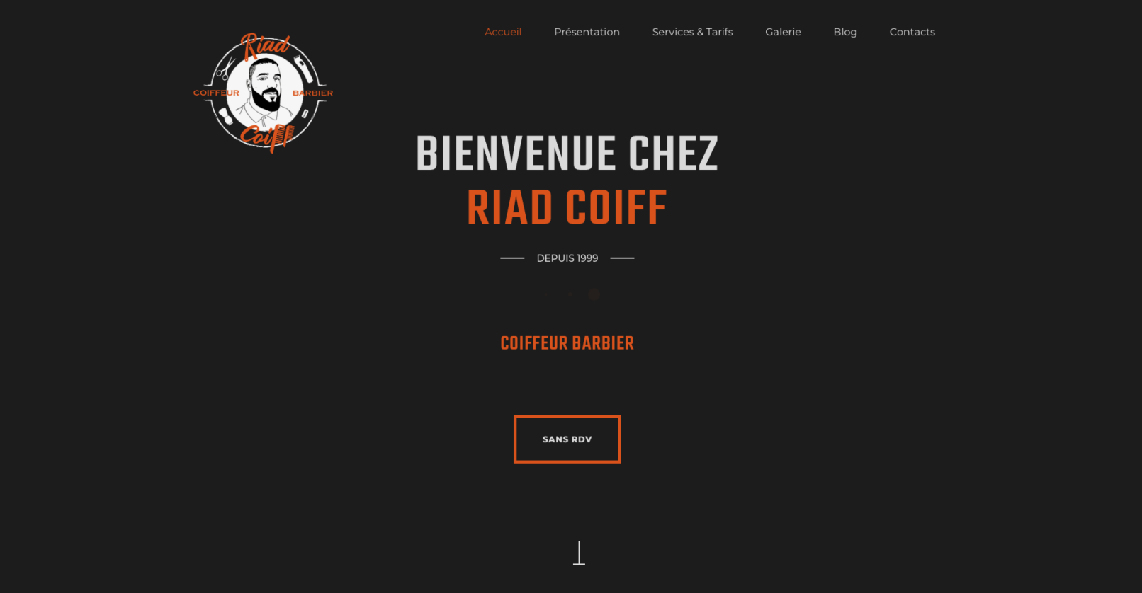 Relooking Riad Coiff : Logotype, identité visuelle, déclinaisons cartes de visite, flyers. Réalisation site internet